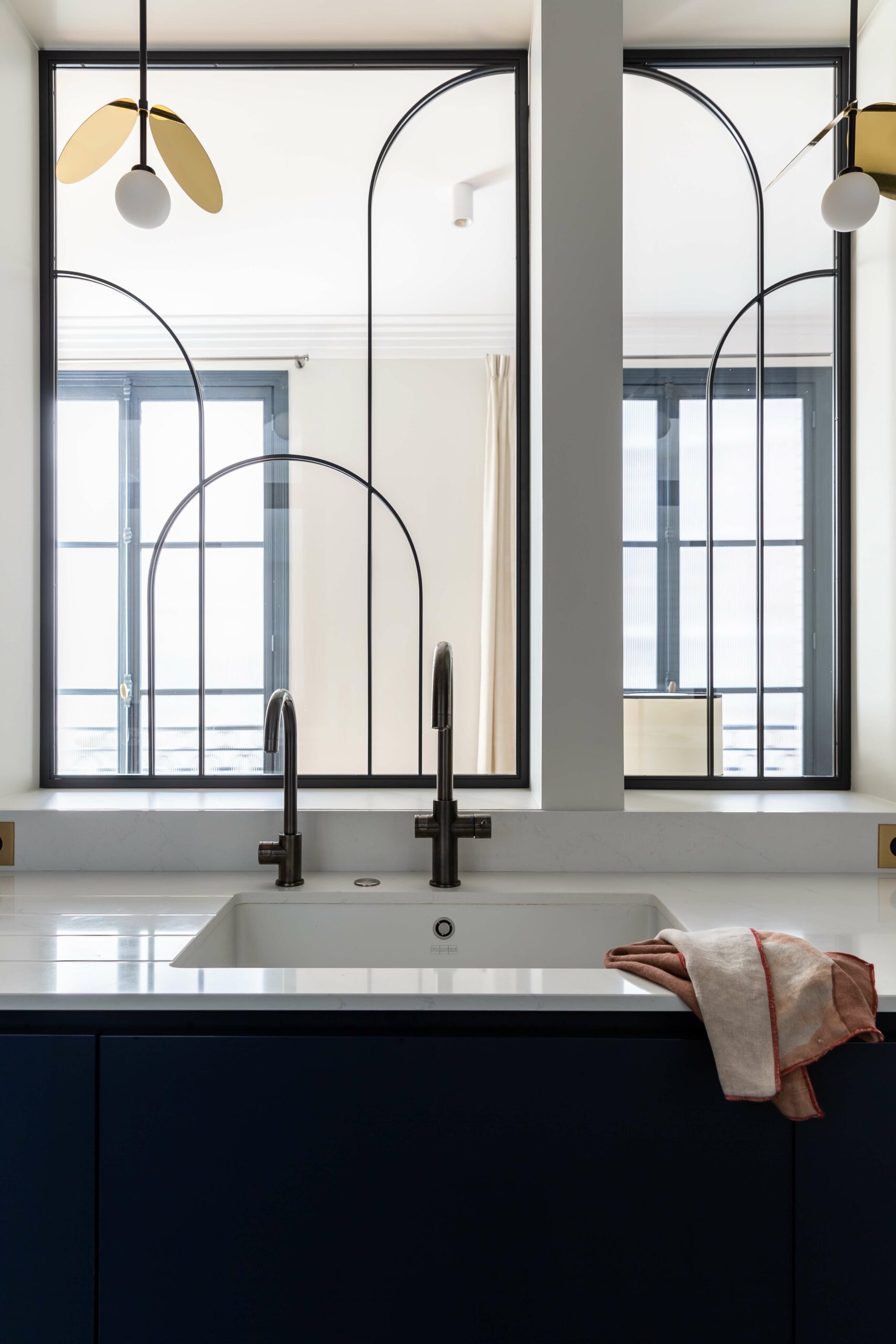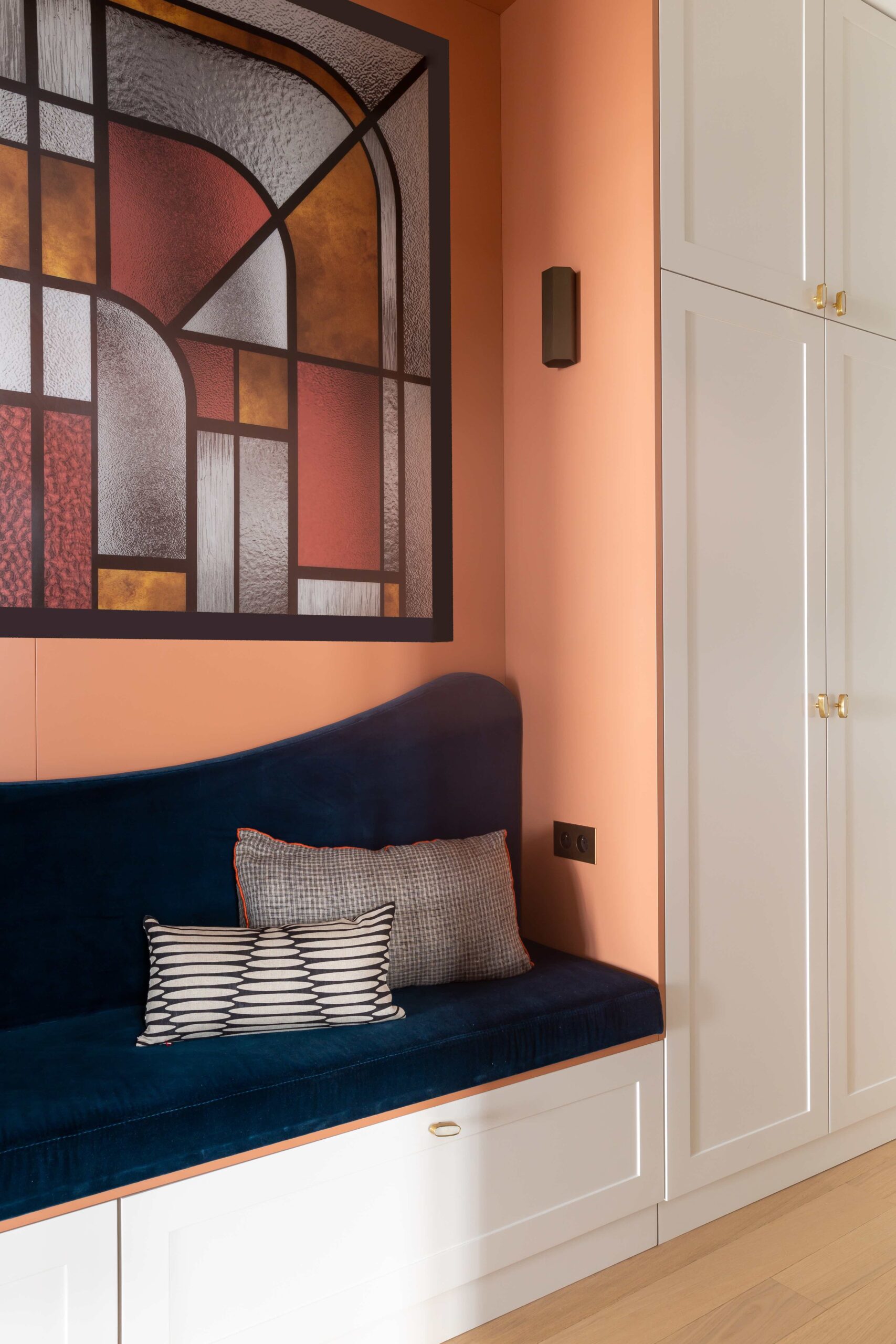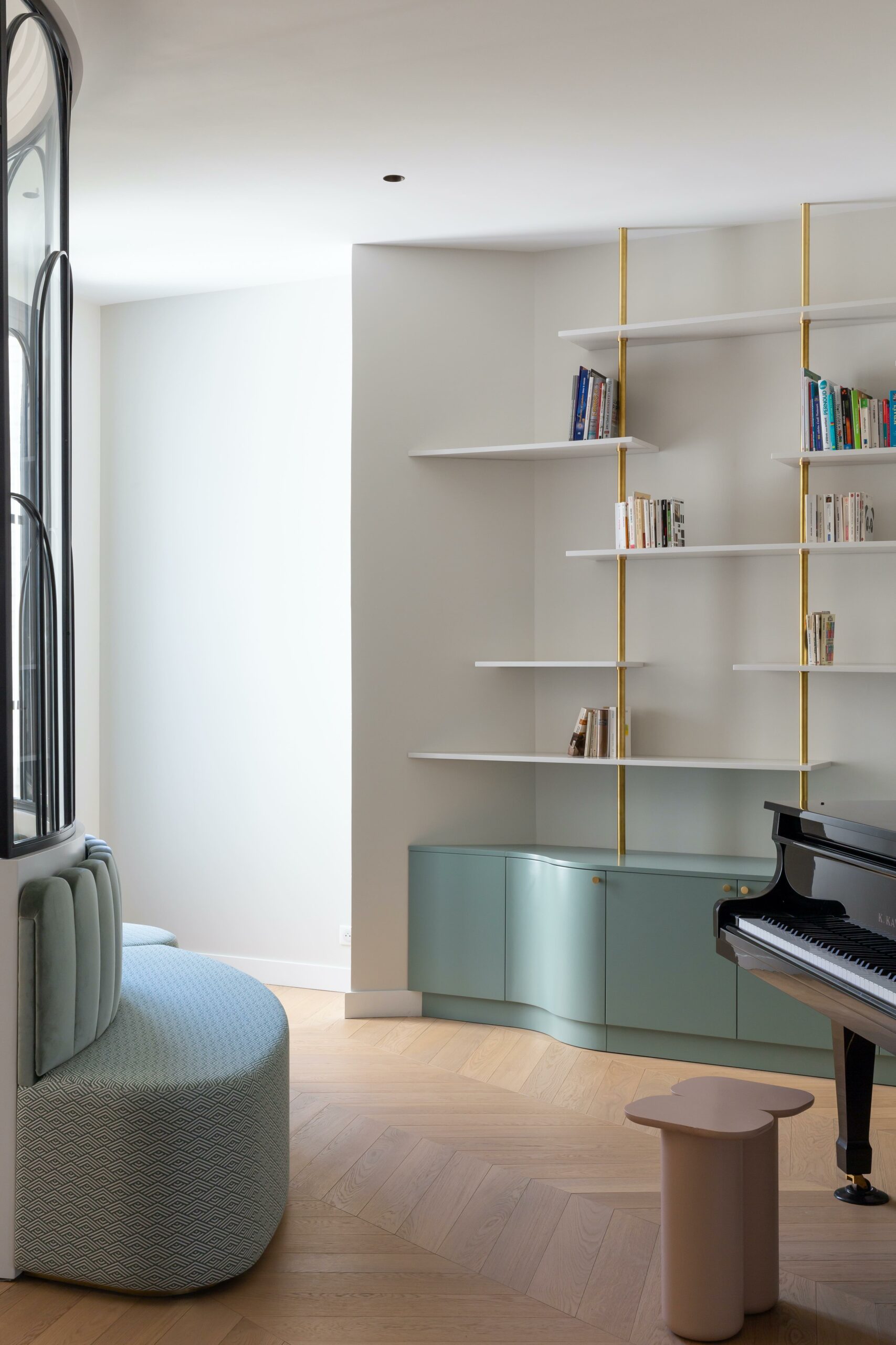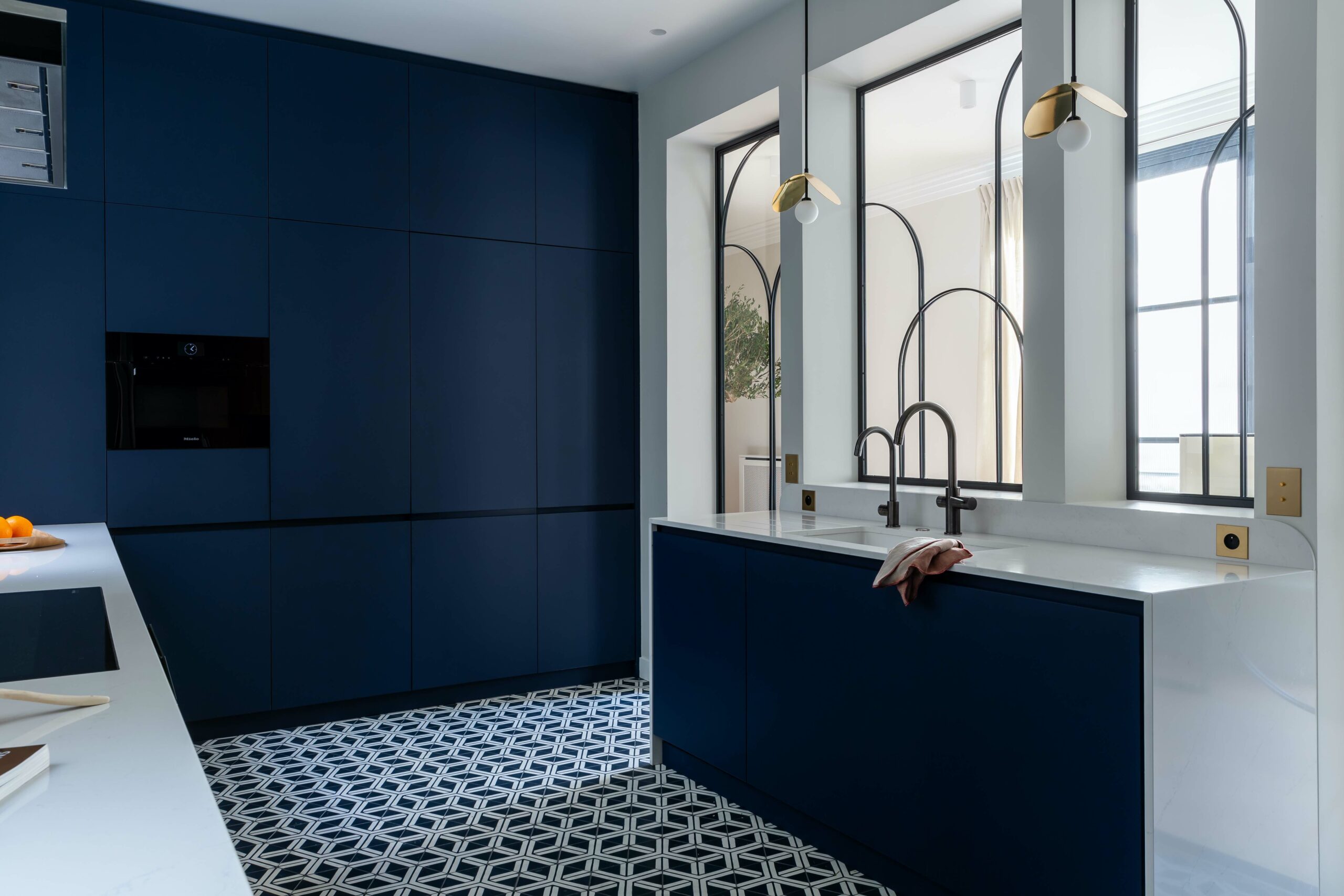Etabli dans un bel immeuble des années 30, cet appartement avait perdu son cachet art déco. Le but de la rénovation s’est porté sur le fait de lui redonner ses lettres de noblesse. Chaque détail s’est inspiré d’un élément existant de l’immeuble ou d’inspiration 30.